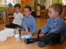 Sabeu que l'aigua de mar és salada? Durant una conversa d'aula anem aportant diferents idees: Algú posa la sal? Jo un dia a la platja vaig notar que l'aigua picava i era salada!!... A l'aula del Pol Nord volem buscar aquesta sal!! els proposo posar una mica d'aigua de mar en un pot i deixar-la a la finestra.