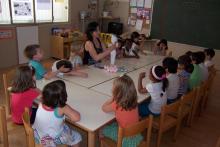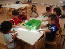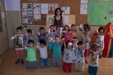 Hem anat a visitar-los i la seva tutora ens ha ensenyat diferents objectes de l'aula.