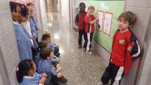 Ahir vam encetar les exposicions d’intercicle, sobre la sortida de tardor. Quatre dels cinc grups formats a classe, van en sortir-se prou bé de la seva primera exposició oral. En aquesta part del projecte, treballem a més de la verbalització per comunicar als que m’envolten conceptes idees i fets, prèviament treballats a l’aula i a casa, la comunicació no verbal. En el nostre cas de 1r B, hem explicat l’itinerari que farem per arribar al Monestir de les Avellanes, tot hi que trobem alguns noms complicats, tots hem après força i ens hem divertit.