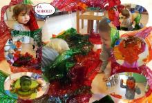 Després de dir les paraules màgiques” Bufa que bufaràs..., s’ha obert un bagul ple d’objectes relacionats amb el buf, estàvem molt emocionats per veure què feia cada element, així que ens hem ficat a descobrir-los; hem fet sonar uns xiulets, hem fet carreres amb unes pilotes bufant-les pel terra, hem fet volar algunes plomes de colors i amb aigua i sabó quan bufàvem sortien bombolles!.