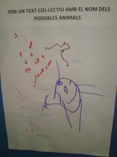Ens arriba una ploma a la classe. Volem investigar de qui serà. Entre tots decidim fer un text col·lectiu amb el nom de possibles animals.