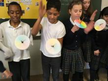 The students of Level 6 experimented with light and heat in Science. They realised that white light is made up of seven colours through an activity called "Newton`s disc". When the disc is rotated, the colours fade to white. Isaac Newton demonstrated that white light is a combination of the seven different colours found in a rainbow. They enjoyed this activity!