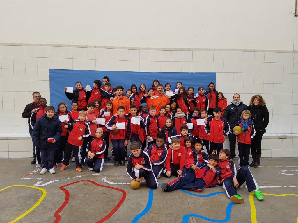 Avui al matí, els alumnes de 5è, hem rebut la visita d'un entrenador i dos jugadors de l'equip de basquet Força Lleida.