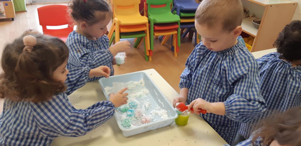 Dins el projecte hivern que hem estat realitzant durant aquest trimestre, portem a l'aula una de les activitats més engrescadores: simulem la neu a la nostra aula.