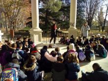 Avui els nens i nenes del cicle inicial hem anat als Camps Elisis a buscar el tronc de Nadal. Quan hem arribat i mentre passejàvem hem trobat unes cartes per poguer localitzar el nostre tronc. Després hem escoltat el conte de la història del tió dels Camps Elisis i l'hem portat cap a l'escola.
