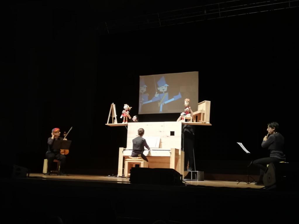 Hi ha pianos que amaguen històries meravelloses com la d'avui que els nens i nenes de 2n han pogut gaudir a l'auditori. "El petit piano" ens convida a través de la seva música, recreada en viu per tres concertistes i de les mans d’una actriu i un actor, tots dos titellaires, a endinsar-nos en el joc d’uns titelles i d’uns dibuixos animats que descriuen, d’una manera divertida, el perfil artístic i humà d’aquest músic, virtuós del piano, compositor, mestre... a la vegada que pare de família: l'Enric Granados.
