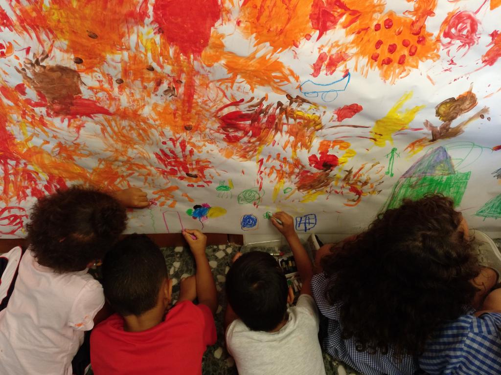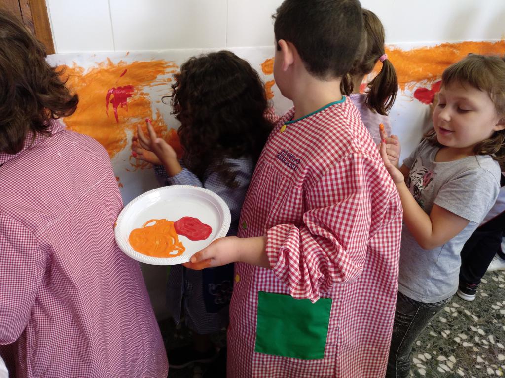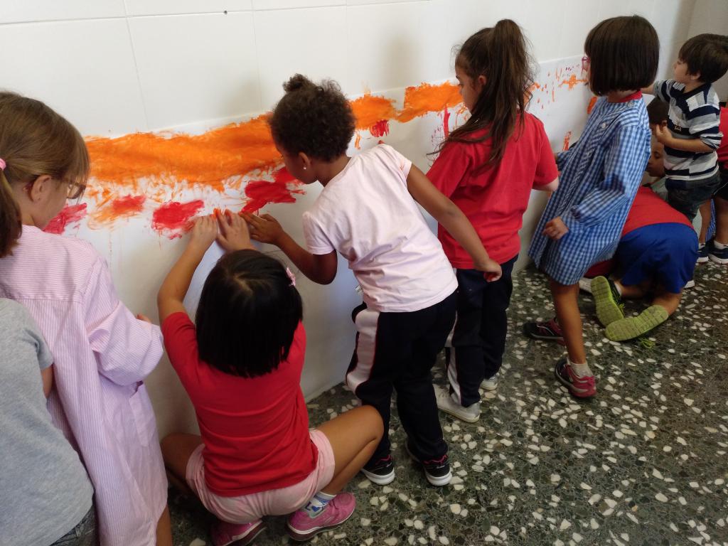 Hem treballat l'artista nipona Rokkaku Ayako. Ens ha agradat molt perquè el seu art és molt lliure de dibuix i basa la seva feina en la tècnica de la pintura de dits. Pinta en suports de gran tamany.
