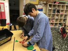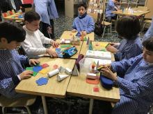 Els alumnes de cicle superior descobreixen les figures geomètriques experimentant amb diferents materials.