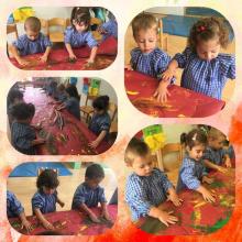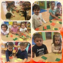 Ja ha arribat la tardor a la nostra llar d'infants i els nens i nenes de la classe de la lluna estem preparant moltíssimes coses per donar-li la benvinguda! Ja sabem que el groc, el vermell, el taronja i el marró són els colors de la tardor; així que aprofitem aquests colors per decorar el hall de la llar tot empegant papers de seda, i pintem amb les mans per començar a donar forma al nostre racó de la tardor de l'aula!!!!