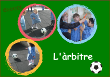 Avui ens hem estrenat fent esport, al matí ha vingut l'àrbitre, el pare de l'Iker, que ens ha explicat en què consistia la funció d'un àrbitre dins un partit de futbol, ens ha portat una pilota, un xiulet, targetes de color groc i vermell...Després tots ben engrescats, hem jugat un partit de futbol al pati.