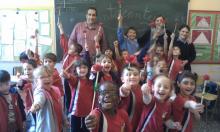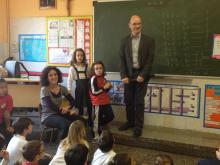 Avui el Blai, la seva mare, el seu pare i el seu germà Nil ens han explicat el conte de sant Jordi amb unes imatges de playmobils molt xules que ells mateixos havien preparat. Després hem fet una manualitat molt bonica: una rosa molt original !!!