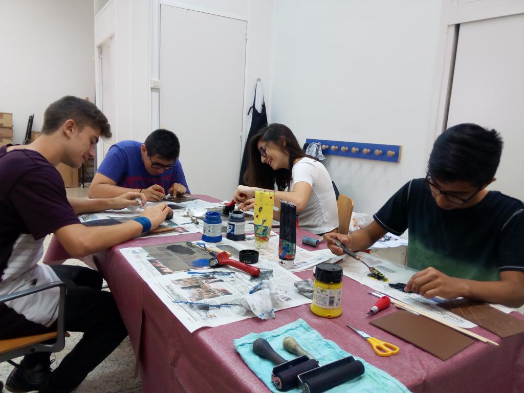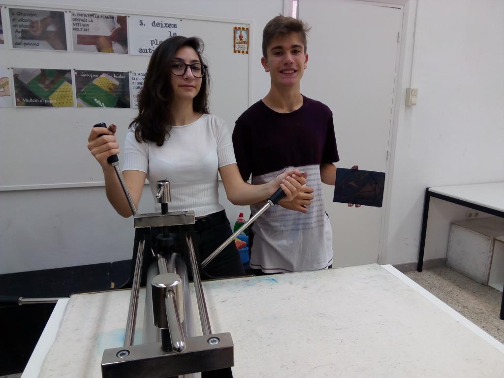 La darrera activitat pràctica del curs de 4t d'ESO EVP ha estat l'estampació de planxes de linoli que els alumnes realitzaren a l'escola. Per aquest motiu hem anat al Museu Morera, on disposarem d'un espai-taller amb tòrcul. Amb això els alumnes han pogut fer un millor acostament a la pràctica artística.