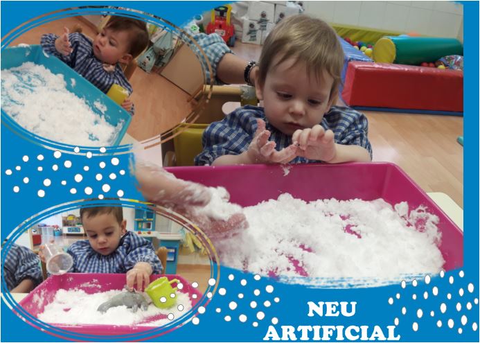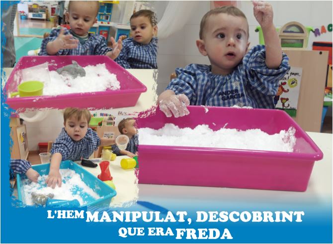 Ens divertim manipulant neu artificial i glaçons ben gelats per endinsar-nos en el fred.