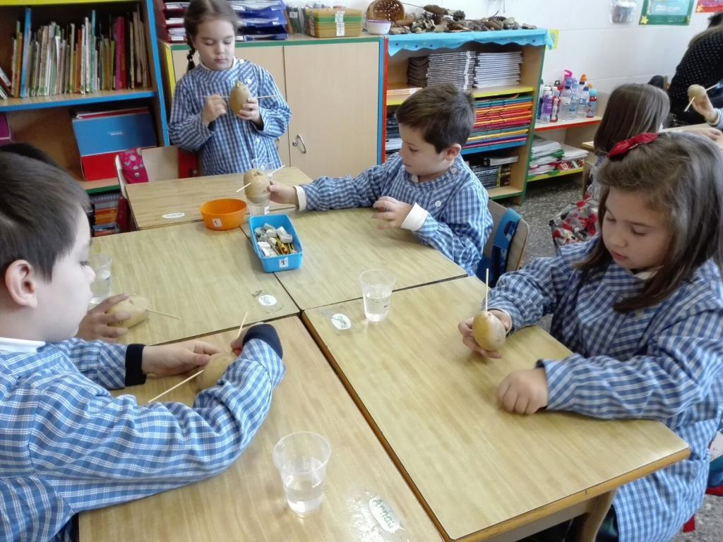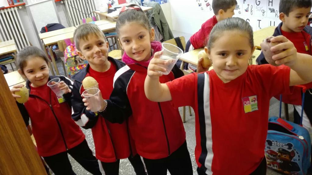 Els nens i nenes de 1r de cicle inicial estem treballant el projecte de les plantes i relacionat amb aquest projecte, hem realitzat un experiment amb una patata "grillada": l'hem punxat amb uns escuradents i l'hem posat dins vas amb l'aigua. Deprés la deixarem reposar durant uns dies prop de la llum del sol. Ens fem preguntes i fem hipòtesis! Què passarà? ...Alguns diuen que sortiràn arrels, altres que es farà més gran,... Anirem observant dia a dia i entre tots trobarem respostes a les nostres preguntes!