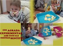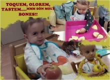 El nostre dia a dia a la llar d'infants es basa en l'experimentació dels elements que ens envolta, una activitat que hem dut a terme és la descoberta dels aliments, hem experimentat amb pomes.
