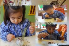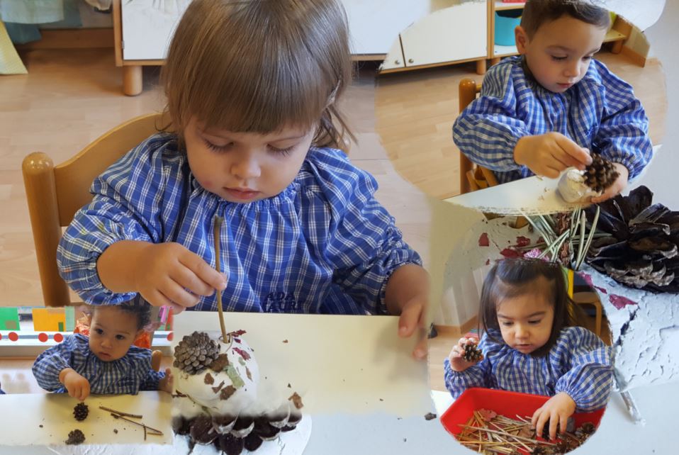 Els nens i nenes de la nostra llar d'infants, hem volgut experimentar amb el nostre cistell que tenim al racó de la tardor. Hem descobert diferents fruits com són les castanyes crues, els moniatos sense coure i per això els hem trobat durs i freds i les magranes ben arrodonides amb corona.