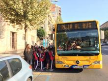 Els alumnes de 3r de primària em fet l'activitat "Puja al bus". Ens ha vingut a recollir a l'escola un autobús municipal. Mentre donàvem una volta per la ciutat, ens han explicat diferents aspectes: quines targetes hi ha, les diferents línies d'autobusos de la ciutat, les parades, els seients prioritaris...