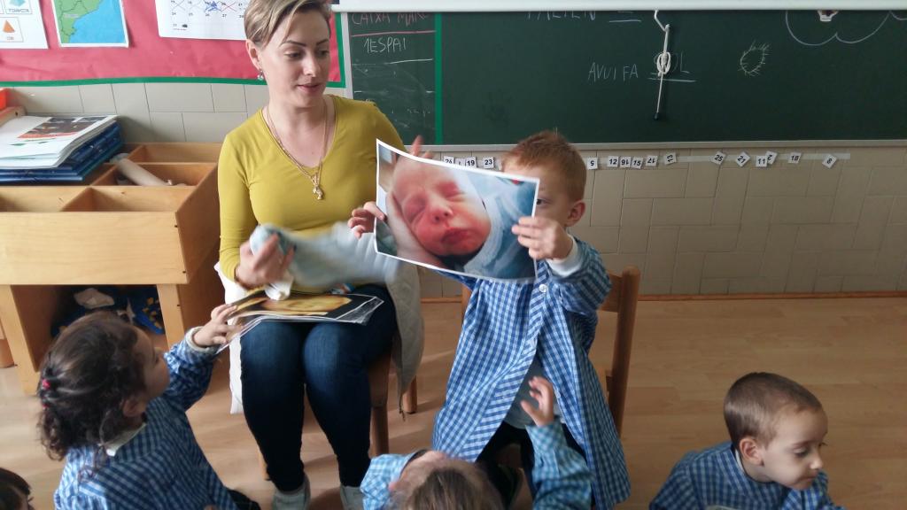 Als companys/es els hi ha agradat molt la seva caixa pintada i amb un munt d'enganxines i tot el que hi han posat a dins. Hem comprovat que els mitjons ara no li anaven i li han posat a un nino de la classe! Ha sigut xulíssim veure una ecografia del que media en Lex en la primera ecografia i del que va medir quan va néixer,...i moltes altres coses que ens han portat. Moltes gràcies família per aquesta estona i regalar-nos una enganxina a cada nen/a!